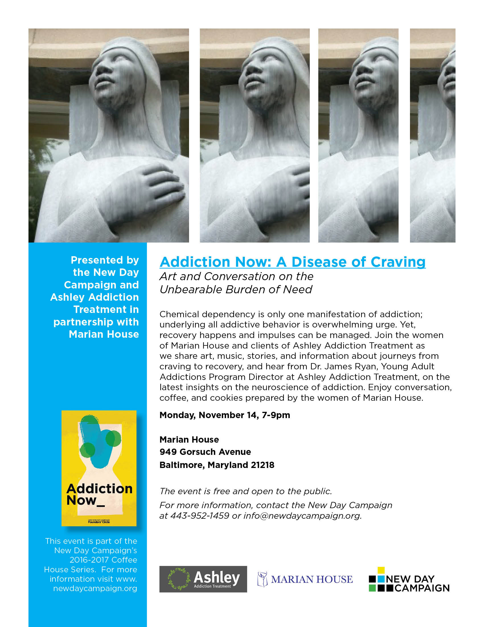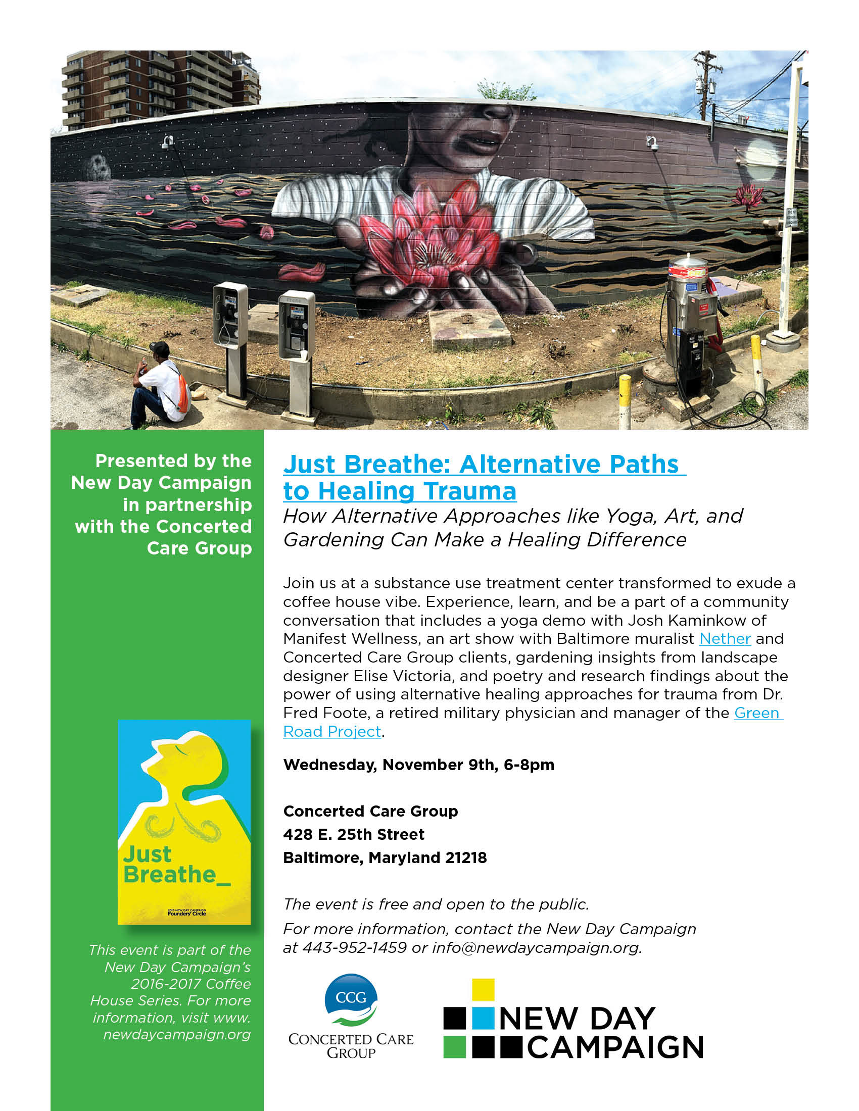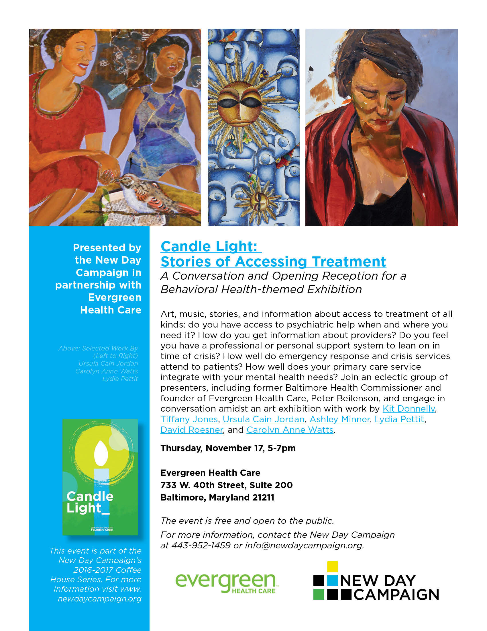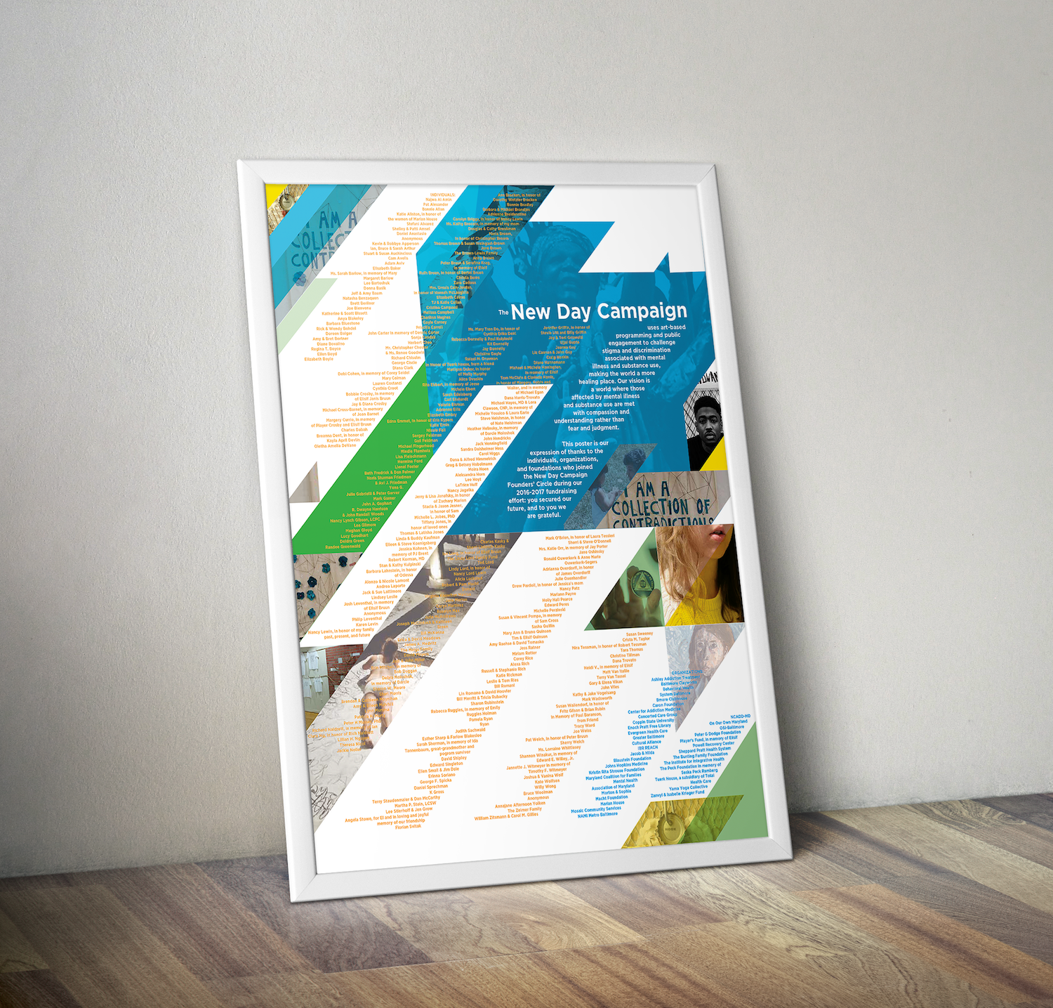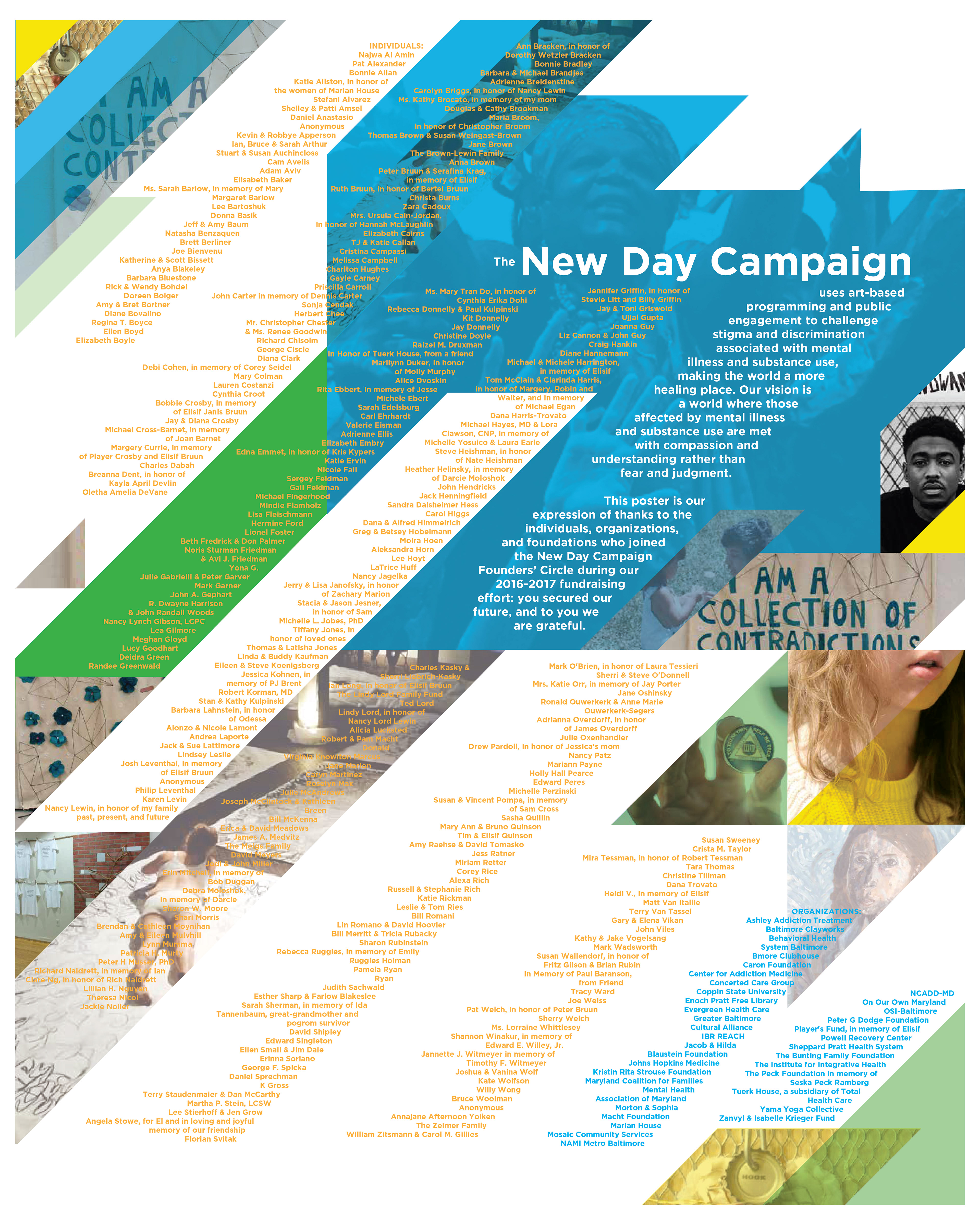 Design development for the New Day Campaign—a 2015 art advocacy project started after the overdose death of the founder's daughter focused on de-stigmatizing addiction, creating communication through art-focused projects.